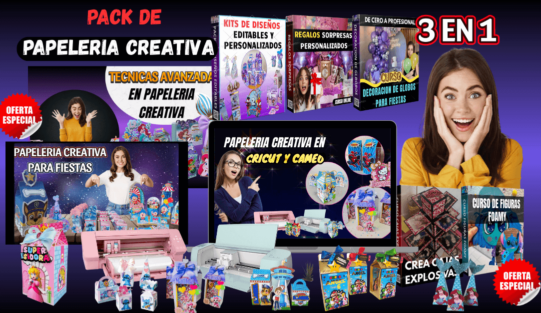 Accede ahora al MEGA PACK COMPLETO de Papelería Creativa 3 en 1, con un descuento especial y BONOS exclusivos de regalo.