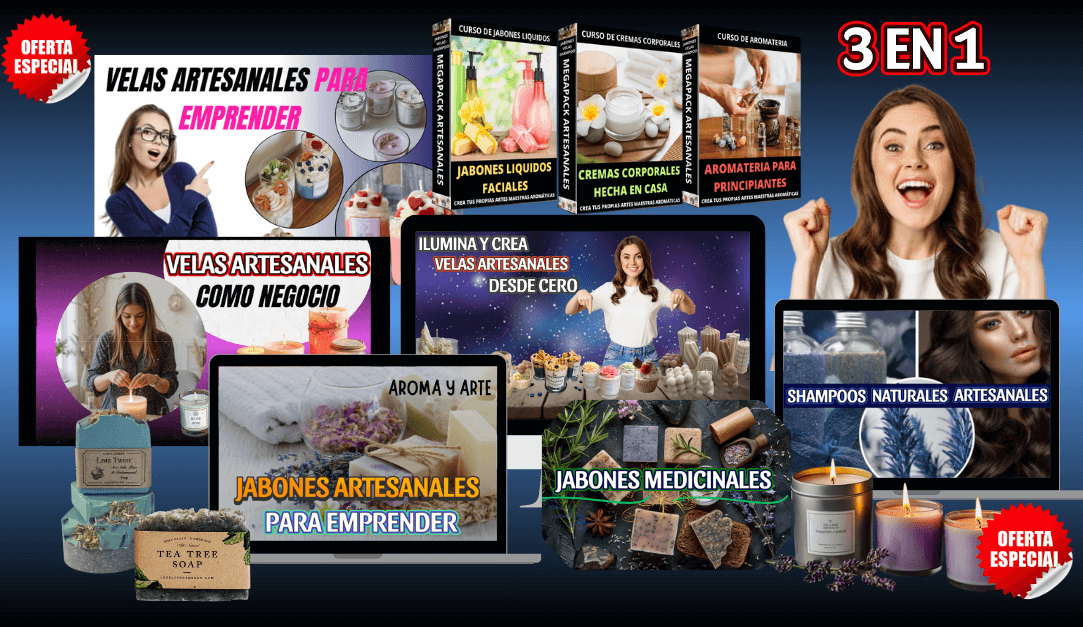 Accede ahora al MEGA PACK COMPLETO de Velas, Jabones y Shampoos Artesanales, con un descuento especial y BONOS exclusivos de regalo.